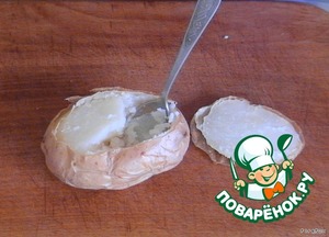 Срезать "шапочку" и вытащить серединку, оставляя при этом небольшое количество мякоти у кожицы, а то "картофельная коробочка" может развалиться