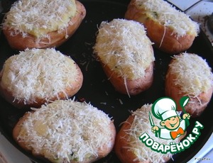 Начинить начинкой коробочки, сверху присыпать остатками сыра.