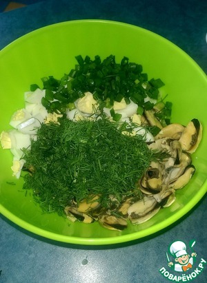 Ингредиенты для «Салат с мидиями и огурцом»: