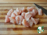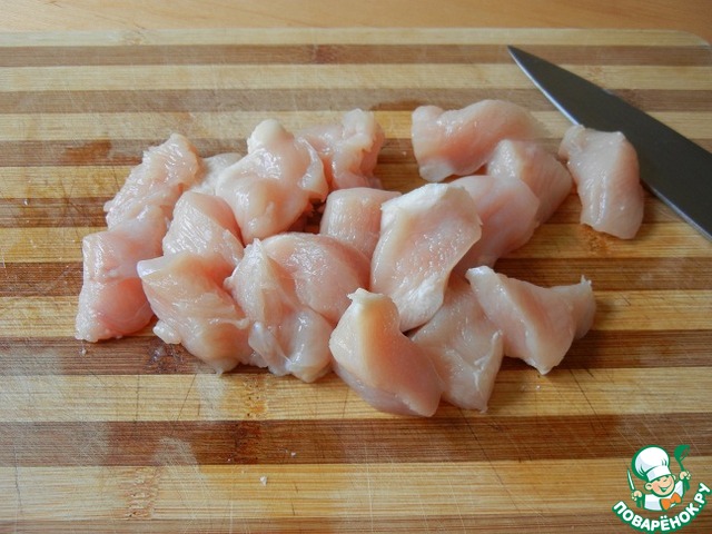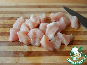 Куриное филе нарезаем небольшими кусочками |