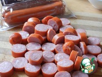 Колбаски нарезаем небольшими кусочками... |