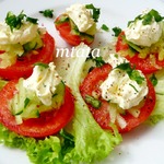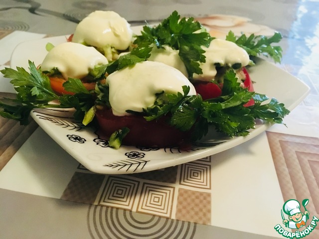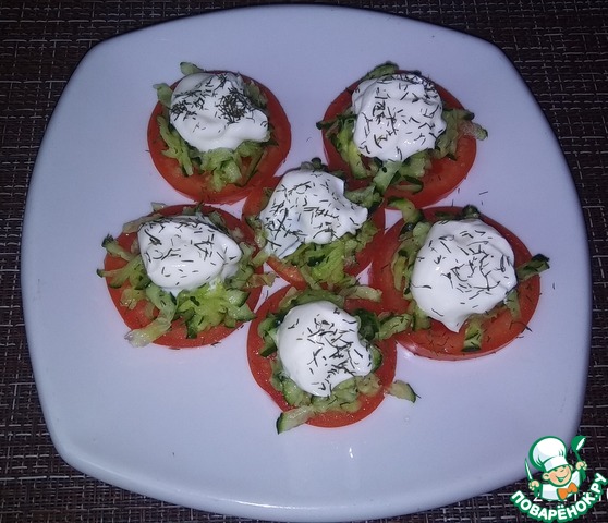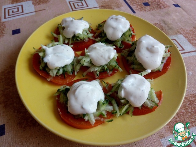 Очень интересный и красивый вариант приготовления всем известного салата из помидоров и огурцов. Смотрится очень красиво и получилось, кстати, намного вкуснее простого салатика. Попробуйте обязательно!