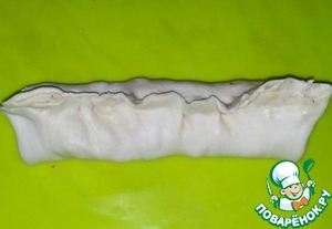 Что делать, если вечером позвонила приятельница и сказала, что скоро подъедет. А я приехала только что с работы и дома шаром покати... Меня в таких случаях спасает уже готовое заранее тесто. Тесто делаю много, фасую по 500 г и по 1 кг. Раскатываю его на прямоугольные листы, каждый перекладываю пергаментной бумагой, заворачиваю в целлофановый пакет и убираю в морозильную камеру. ( Рецепт теста не пишу, его описание есть в других моих рецептах. Когда я делаю много теста, тогда пропорции ингредиентов не соблюдаю. ) -