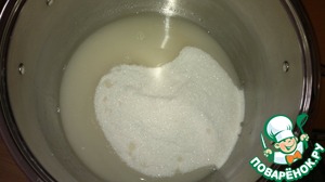 В кастрюлю засыпаем сахар, 2 стакана воды - кипятим, снимаем пену
