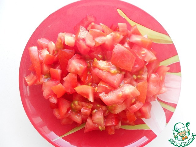 Отварить в подсолённой воде рис, в это время подготовить овощи. Нарезать помидоры.