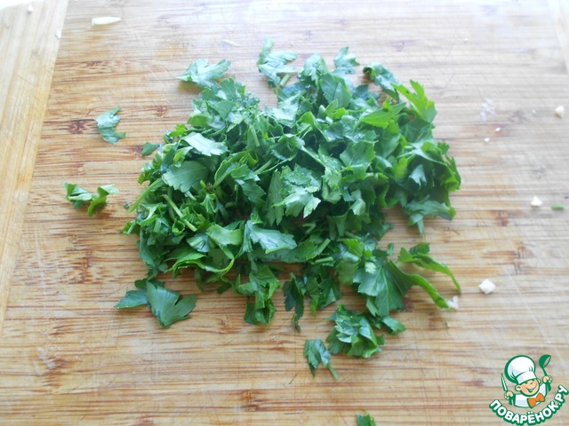 Посолить, поперчить, добавить тёртый сыр, перемешать. и посыпать петрушкой.
