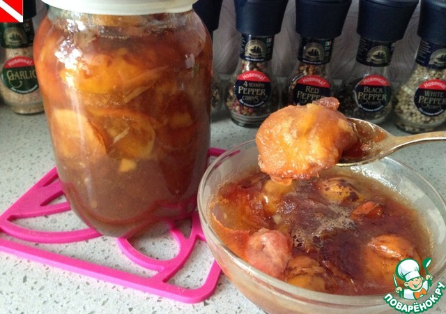 Но там другая технология. Агар залить водой 100 мл, дать минут 30 постоять. долить выделившимся соком (100 мл) и довести до кипения. Он должен раствориться. Вылить в сливу, перемешать и все вместе поставить на огонь, как закипит, огонь уменьшить и варить 5 мин. Далее можно разложить горячие по банкам и закатать. Если сомневаетесь - то по рецепту, сначала пастеризовать.
