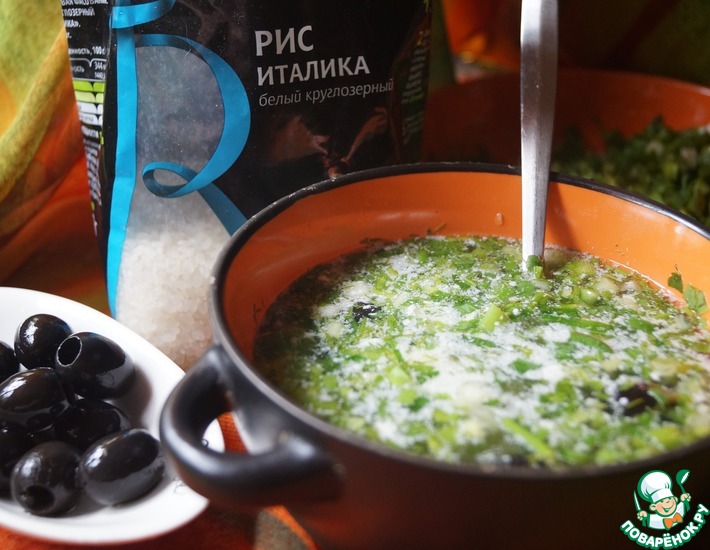 Рецепт «Лёгкий суп с рисом и маслинами»: