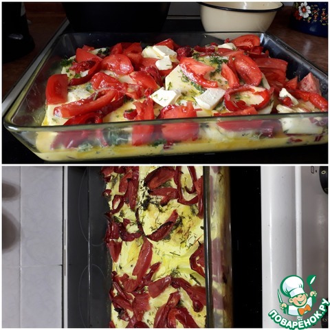 Ставим в духовку и запекаем тридцать-сорок минут. Смотрите по своей духовке. У меня после получаса серединка была еще жидковатой.