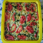 Яйца взбиваем со сметаной, кефиром, сладкой паприкой и солью. Добавляем измельченную зелень, муку и перемешиваем. Взбивать не надо, иначе потом омлет у вас резко осядет.