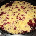 1. нижний слой с трудом отделялся от формы ) 2. некоторые ягоды верхнего слоя, перемешанных с крошкой и не прикрытые ей, быстро усохли раза в 2-3.