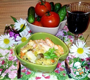 Рецепт «Ризотто с курицей, грибами, креветками и овощами»: