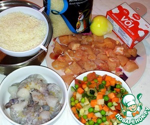 Ингредиенты для «Ризотто с курицей, грибами, креветками и овощами»: