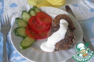 Вымешиваем фарш, формируем котлеты, обваливаем в панировочных сухарях и обжариваем на растительном масле. Вот что у нас получается! Очень вкусно с овощами и сметаной.