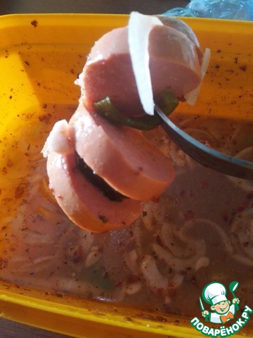 [+2]Лук,перец, чеснок, огурцы всё очень вкусно замариновалось!!! Ушло на ура, а маринованные колбаски предложили зажарить,аромат!!!!не передать!