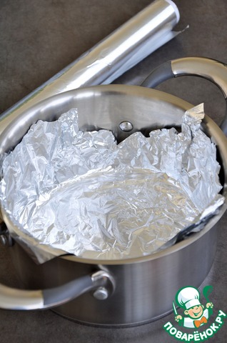 Выстелить дно кастрюли слоем фольги.