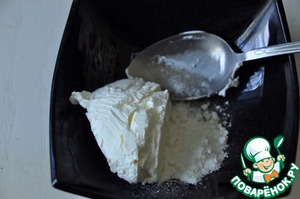 Сыр "Филадельфия" смешиваем с сахарной пудрой.