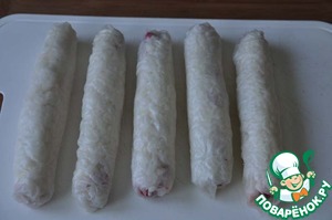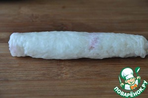 Сворачиваем в рулет, для удобства руки смачиваем водой.