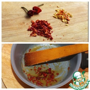 Для приготовления перечного варенья удалить семена перца чили, хвостик с небольшим количеством мякоти оставить для декора, чили нарезать мелкими кубиками. Отправить нарезанный чили в сотейник с толстым дном, добавить сахар, сок лимона, на медленном огне довести до кипения, греть 1 минуту.