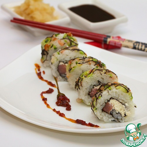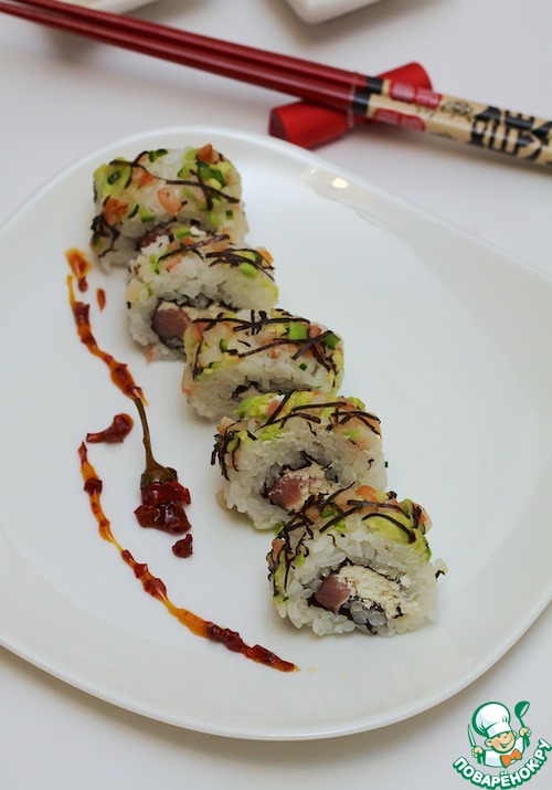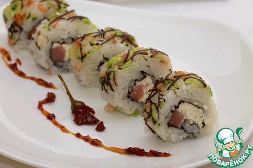 Рецепт «Ролл с семгой и перечным вареньем»: