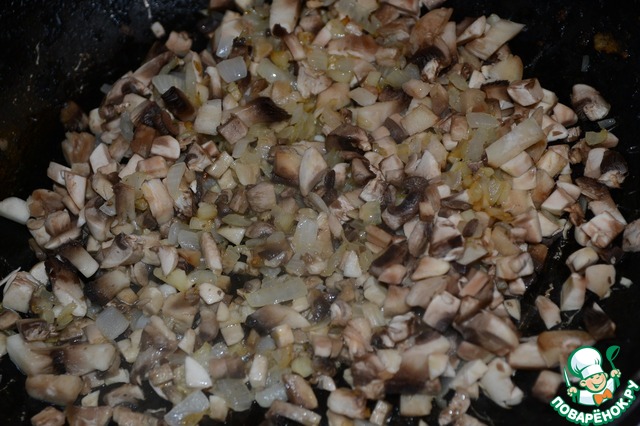 Шампиньоны нарезать небольшими кусочками.