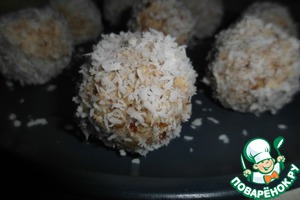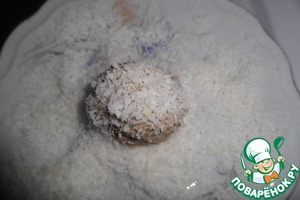4. Обваливаем шарики в кокосовой стружке.