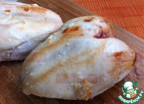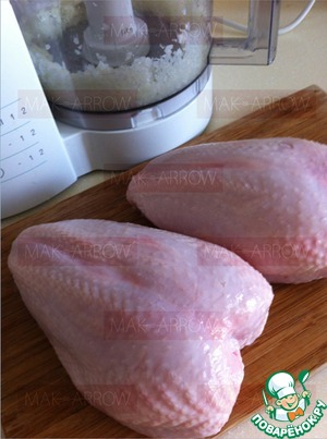 Куриные грудки обмыть и обсушить бумажным полотенцем. Сразу скажу, что надо было бы грудку разрезать на небольшие кусочки, но свою ошибку я поняла уже позже, когда поправить было ничего нельзя (о своей ошибке напишу дальше).