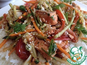 Рецепт «Теплый салат с рыбой, овощами и рисом»:
