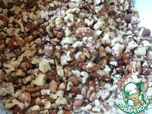 • Измельчаем на свое усмотрение орехи, добавляем их в хлебно-сахарную крошку.