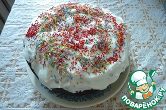 Аккуратно вынимаем наш пирог на блюдо и заливаем шоколадной глазурью.