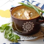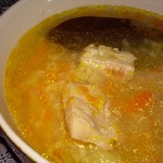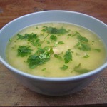Суп с курицей, горохом и чесноком