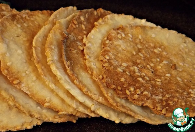 Крекеры получаются очень тонкие и нежно- ломко-жесткие (не знаю как еще выразится). С сильным ароматом кунжута. В общем нам очень понравилось.