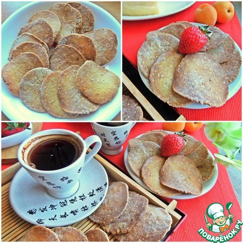 Положить на противень, который застелен пекарской бумагой. И выпекать при t= 200 5 мин. Вынуть и перевернуть на другую сторону. Выпекать еще 10 мин до светло-золотистого цвета.