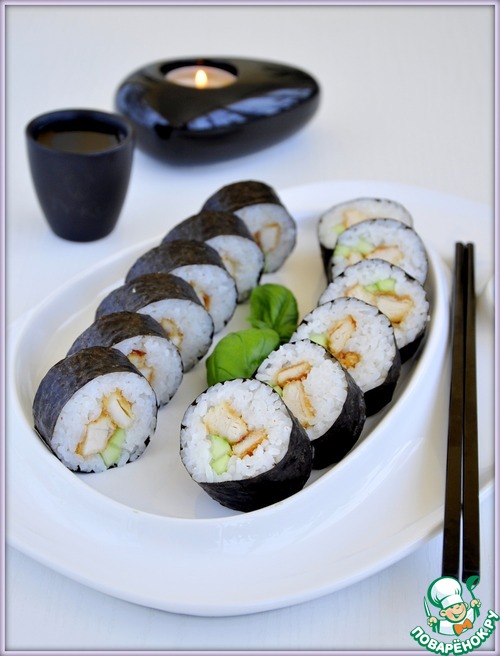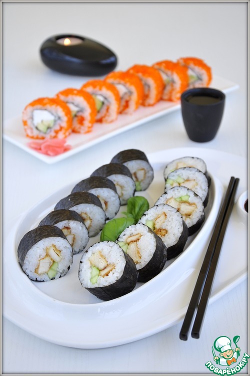 Рецепт «Роллы с курицей тонкатсу и роллы урамаки с икрой тобико»: