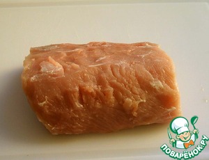 Для приготовления необходим целый кусок свиной вырезки. Другое мясо желательно не использовать. Зачищаем наш кусок от пленок.