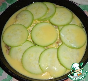 Выкладываем оставшиеся кружочки кабачка и вылить оставшуюся заливку.