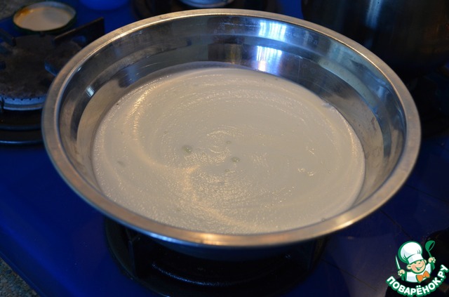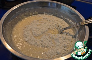 К манке добавить сахар, ваниль и по чуть-чуть всыпать муку, чтобы не было комков.