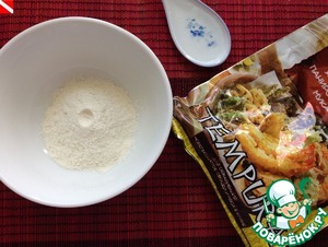Панировочную муку разведем ледяной водой и слегка перемешаем, чтобы оставались комочки и пузырьки воздуха