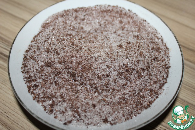 0.5 стакана сахара, 2 столовые ложки какао и 3 столовые ложки горячей воды. -