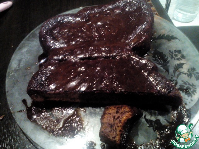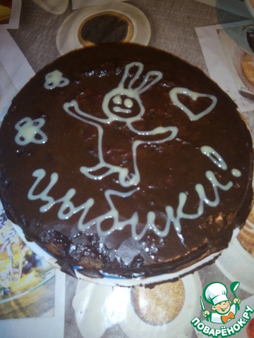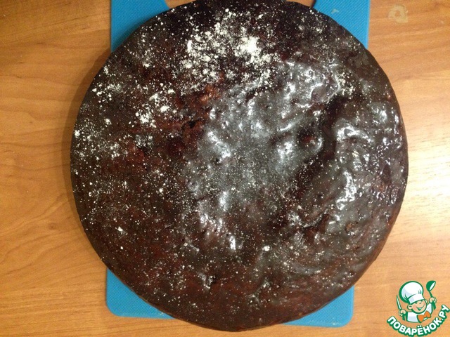 Дальше можно разрезать пирог пополам и смазать сметанным кремом (сметана+сахарная ПУДРА по вкусу). А потом полить сверху глазурью. Я полила сверху остатками крема)))