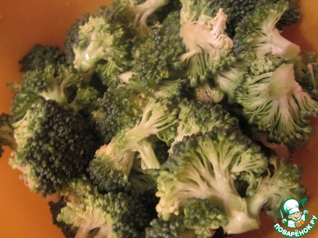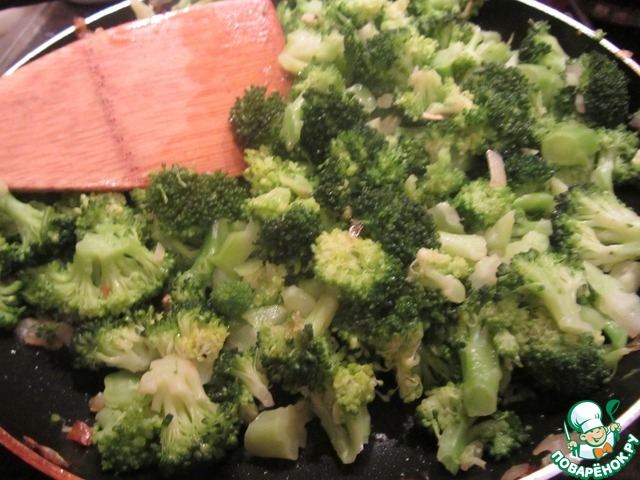 Добавляем брокколи, немного прогреем всё вместе и снимаем с огня.