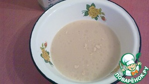 Дрожжи растворить в тёплой воде. Добавить 3 ст. ложки сахара и соль. Тщательно перемешать до однородности. Оставить в тёплом месте на 10-15 минут.