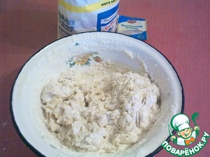 В дрожжевую смесь добавить ванильный сахар, творог и муку.