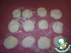 После этого тесто разделить на небольшие одинаковые кусочки.