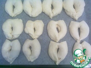 Сложить их пополам и надрезать ножом. Немного раскрыть каждую булочку, чтобы получились "сердечки".