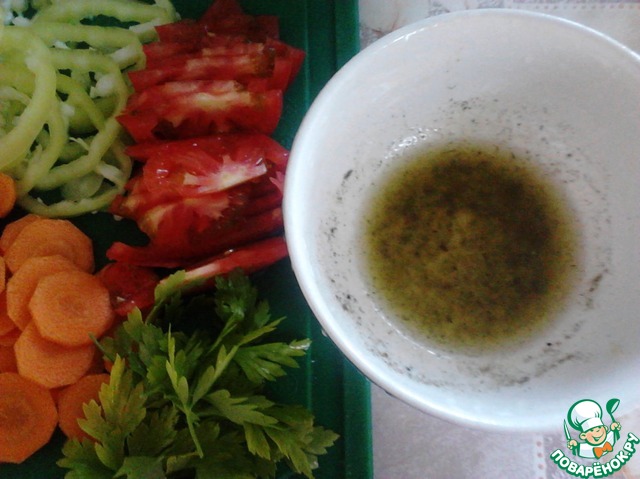 • Приготовить соус, для этого смешать оливковое масло, итальянские травы, соль и сок лимона