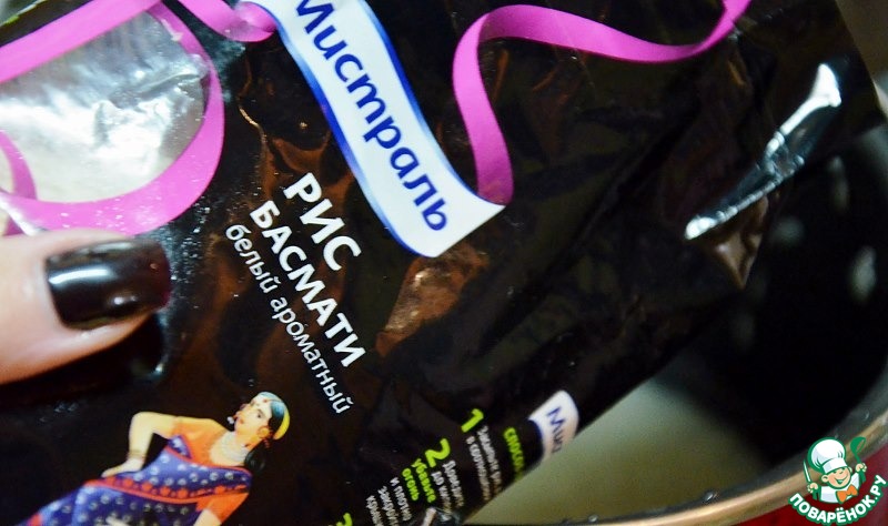 Рис промываем и отвариваем согласно инструкции на упаковке. Я взяла белый ароматный рис Басмати ТМ Мистраль.