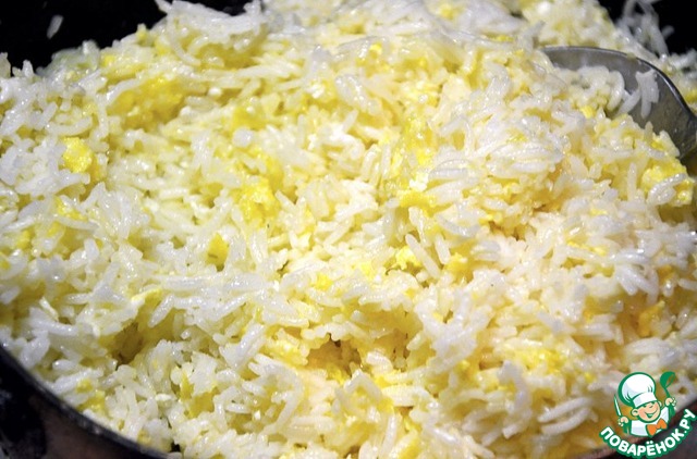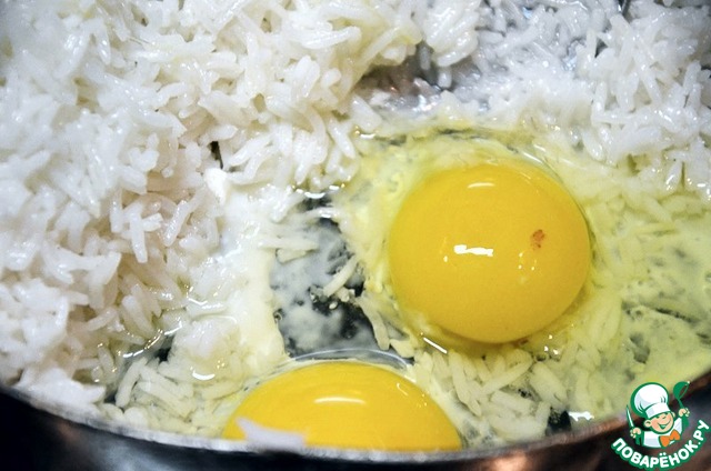 Даем схватиться и затем перемешиваем с рисом.