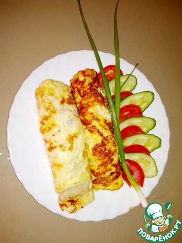 Сразу же, пока наш шедевр горячий, выкладываем на него кусочек сыра, веточку петрушки и пару ломтиков помидора, заворачиваем - и все!!! Готово!