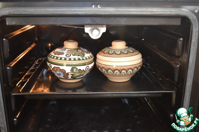 Ставим духовку на минимум (у меня 150). Отправляем горшки обратно туда БЕЗ крышки.